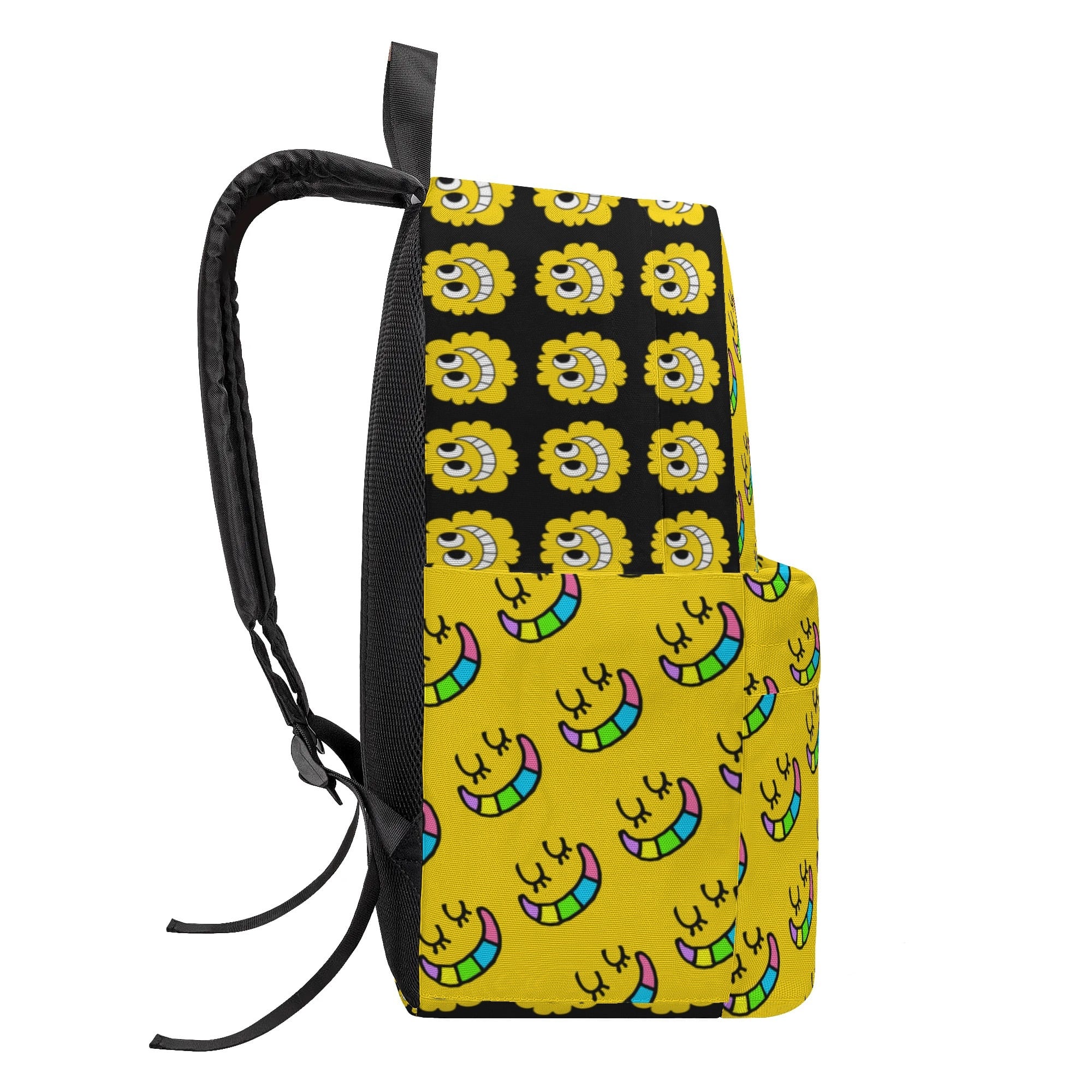 ポリエステル100%素材のriekimデザインフルプリントバックパック、軽くて丈夫。雨の日も安心です。
